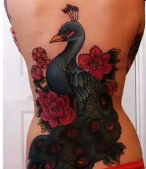 腰间美丽的孔雀纹身