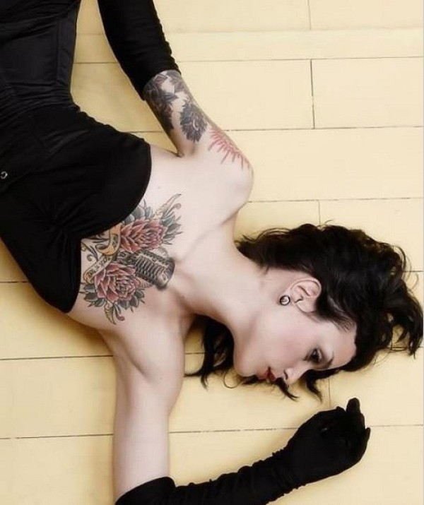 女性大花胸纹身_43张霸气漂亮的女性大花胸纹身图案作品