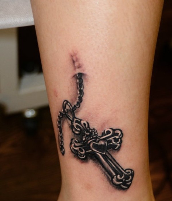 腿部潮流帅气的十字架纹身图案