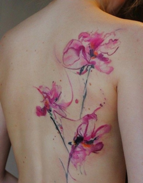 色彩鲜艳的背部花朵纹身
