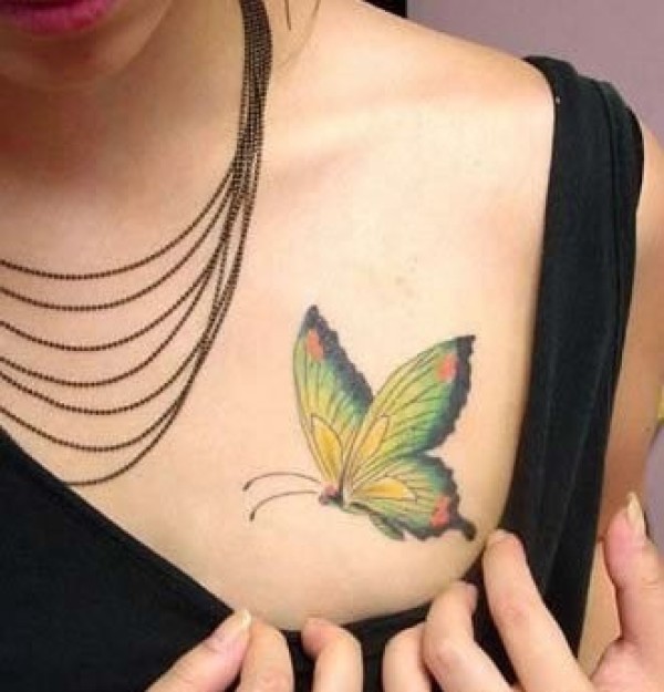 性感又唯美胸部翩翩起舞的蝴蝶纹身图案大全