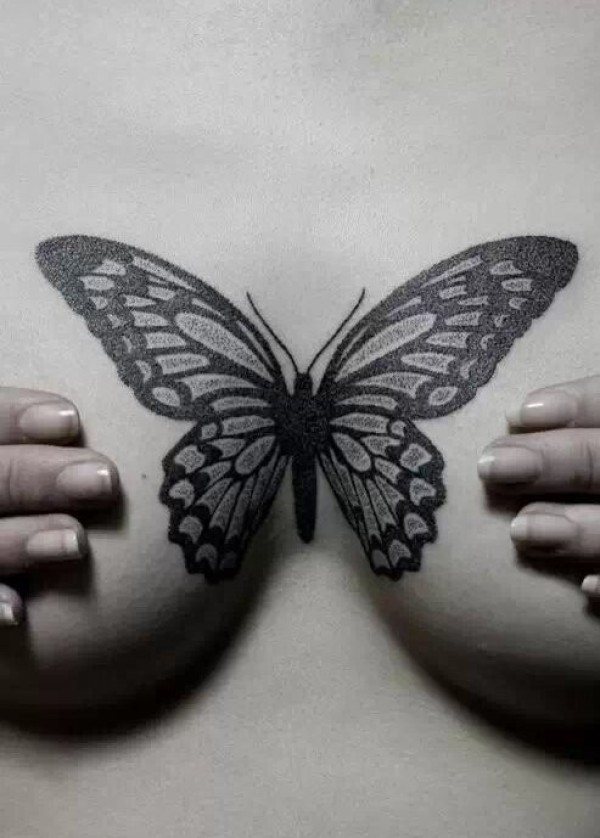 性感又唯美胸部翩翩起舞的蝴蝶纹身图案大全
