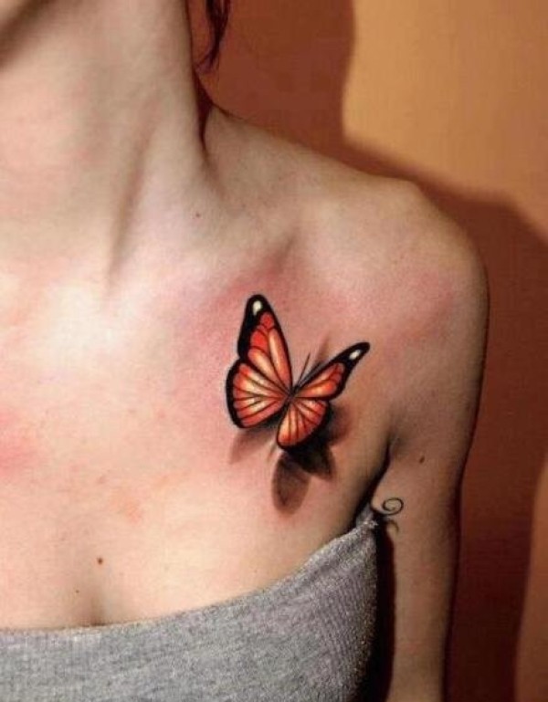 性感又唯美胸部翩翩起舞的蝴蝶纹身图案大全