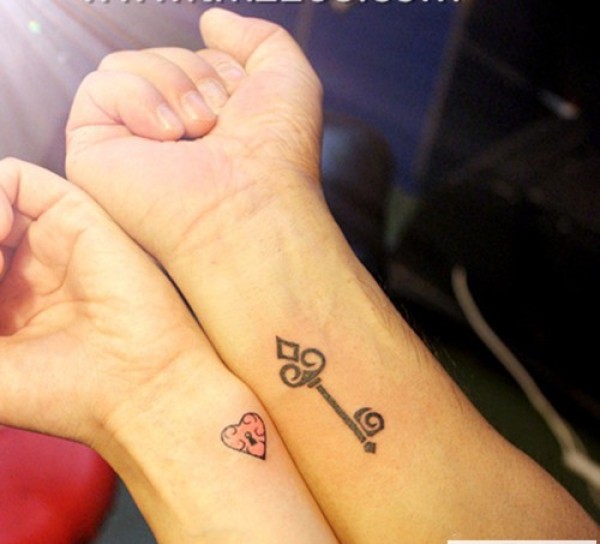 浪漫的钥匙锁匙情侣纹身