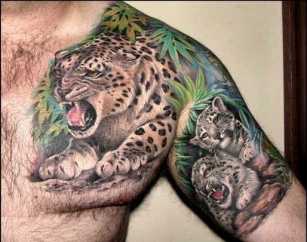 半甲霸气豹子纹身图片