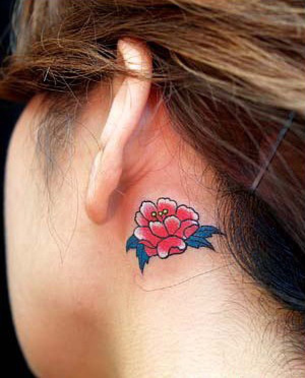耳部牡丹纹身图片