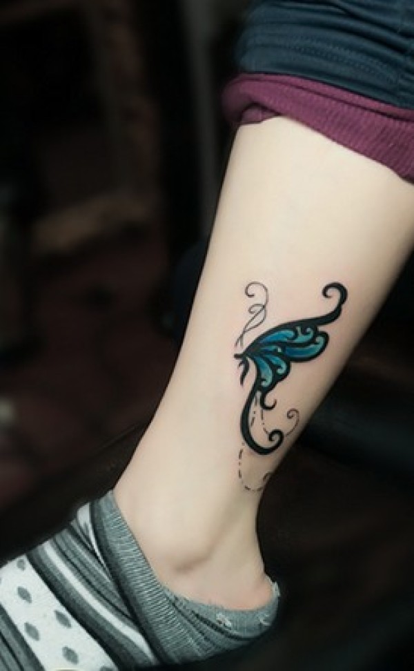 脚踝上美丽的彩色蝴蝶纹身图片