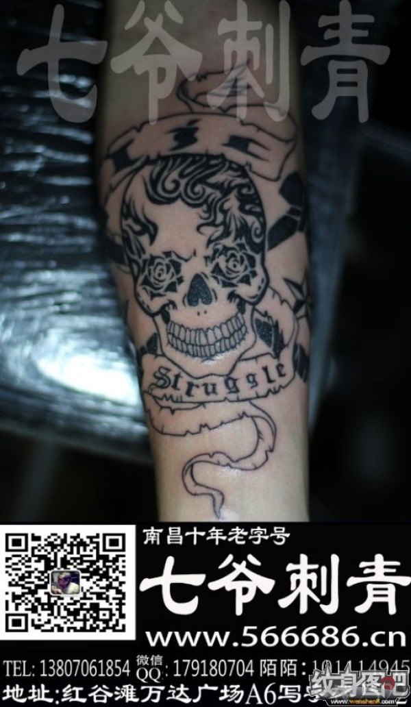 男人大臂黑白彼岸花骷髅_黑白纹身图案大全_纹身图吧