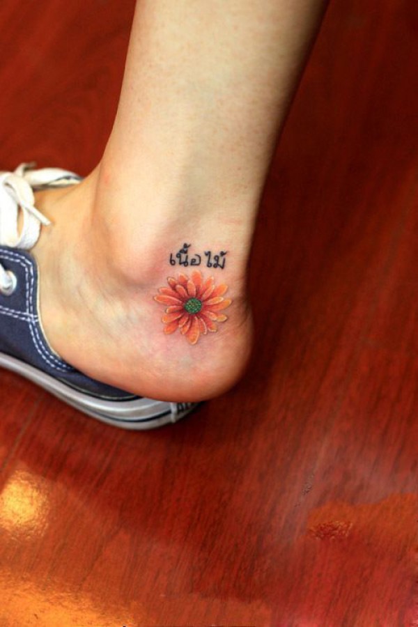 女生脚踝向日葵纹身_脚部纹身图案大全_纹身图吧