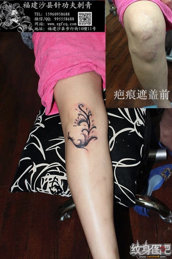 福建纹身--针功夫纹身--膝盖疤痕遮盖纹身
