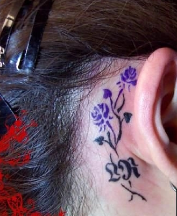耳后的小玫瑰图腾纹身
