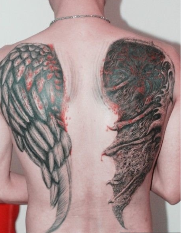 满背天使与恶魔翅膀纹身