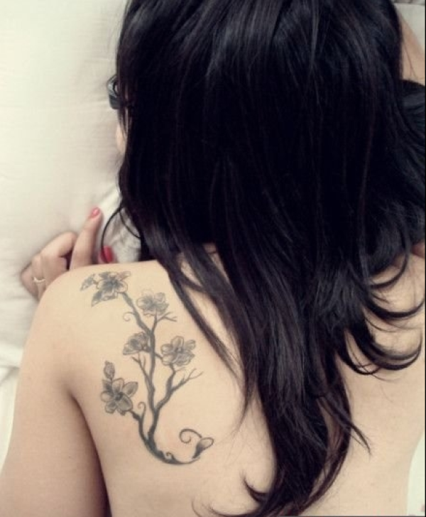 美女背部唯美梅花纹身