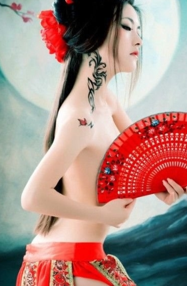 后颈部纹身小图--9张女生脖子后颈处的简约纹身图案