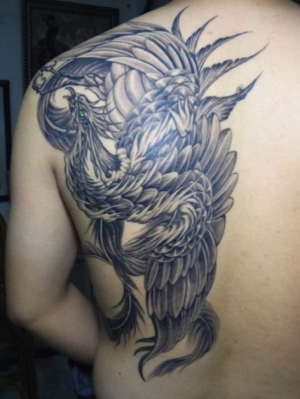 男士霸气的凤凰背部纹身