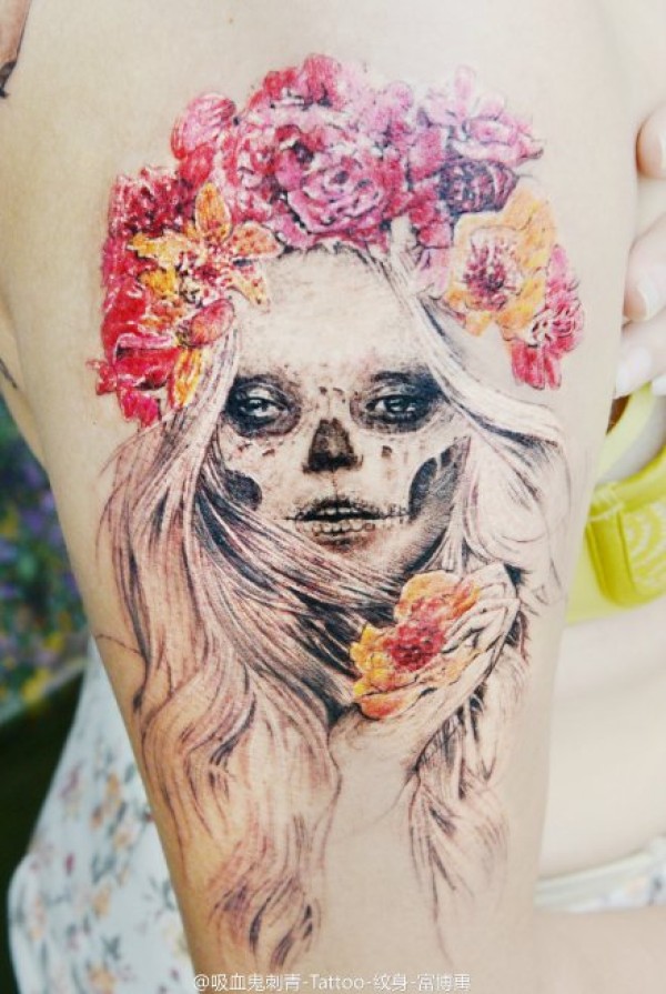 侧腰女骷髅刺青图案图片_骷髅纹身图案大全_纹身图吧