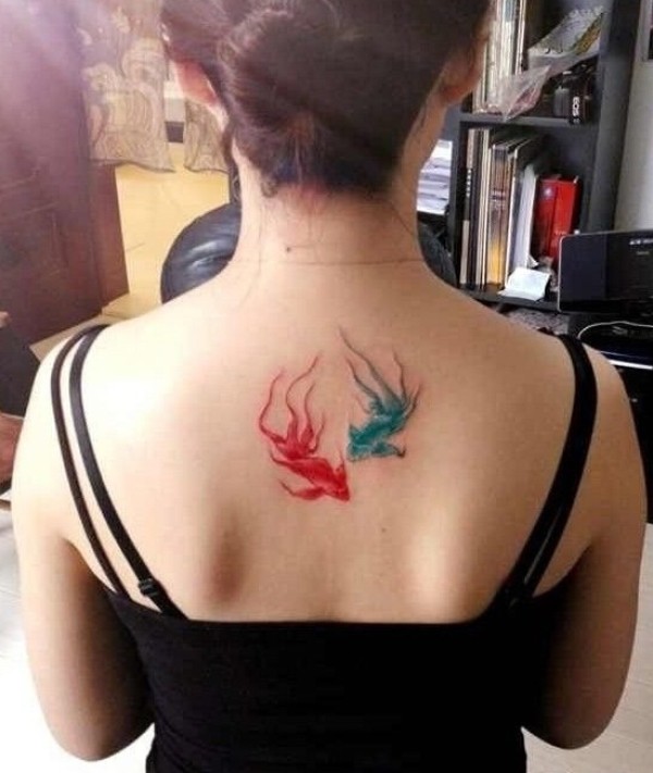 红蓝情侣鱼纹身