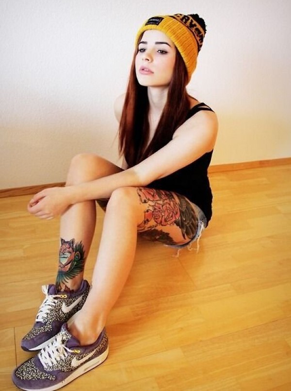 女孩腿部唯美刺青_腿部纹身图案大全_纹身图吧