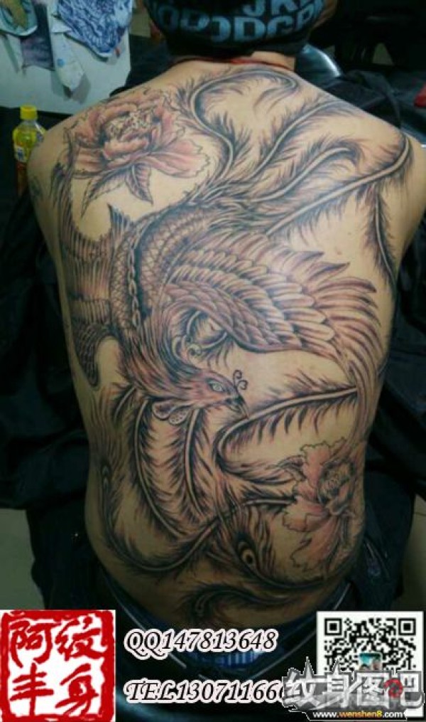 后背凤凰纹身图案大图