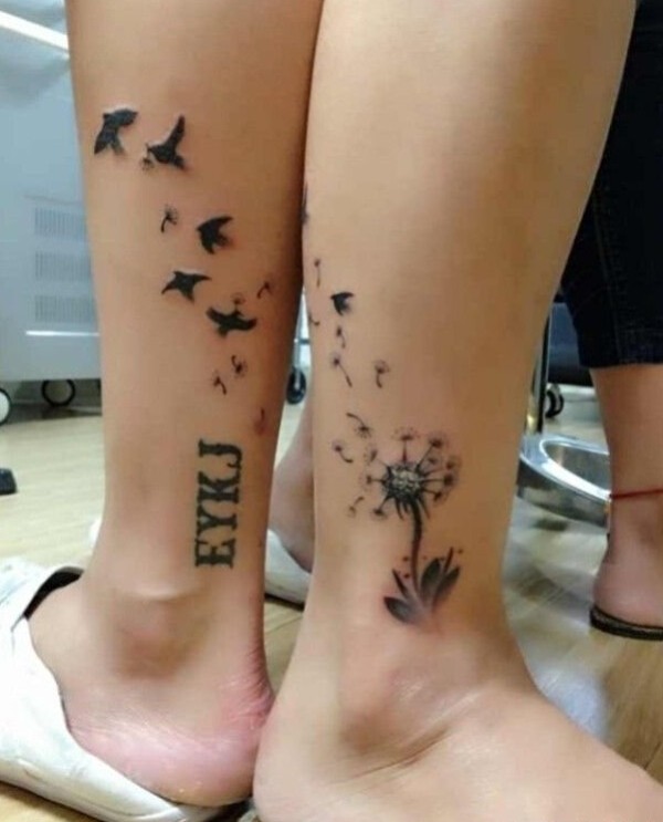 蒲公英与鸟儿情侣纹身