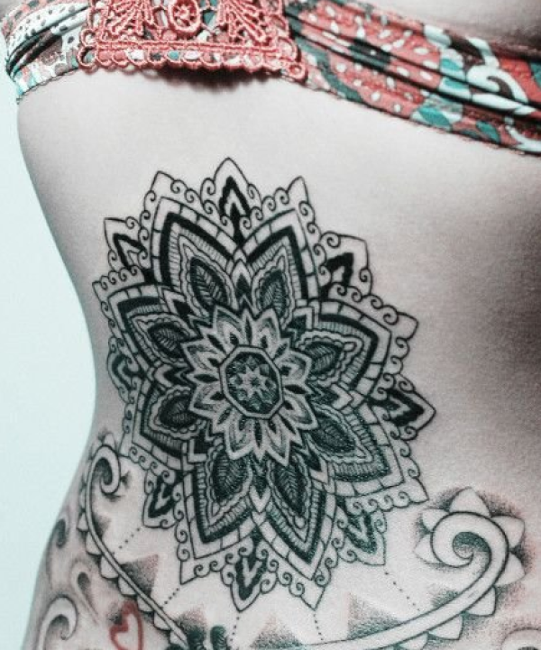 女性腰部莲花花纹刺青_腰部纹身图案大全_纹身图吧