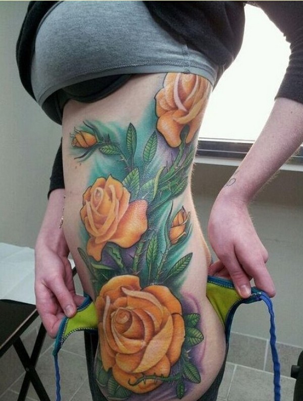 性感女生腰腹漂亮好看的玫瑰花纹身