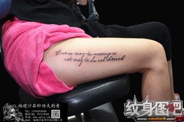 福建纹身-针功夫纹身作品--大腿英文纹身