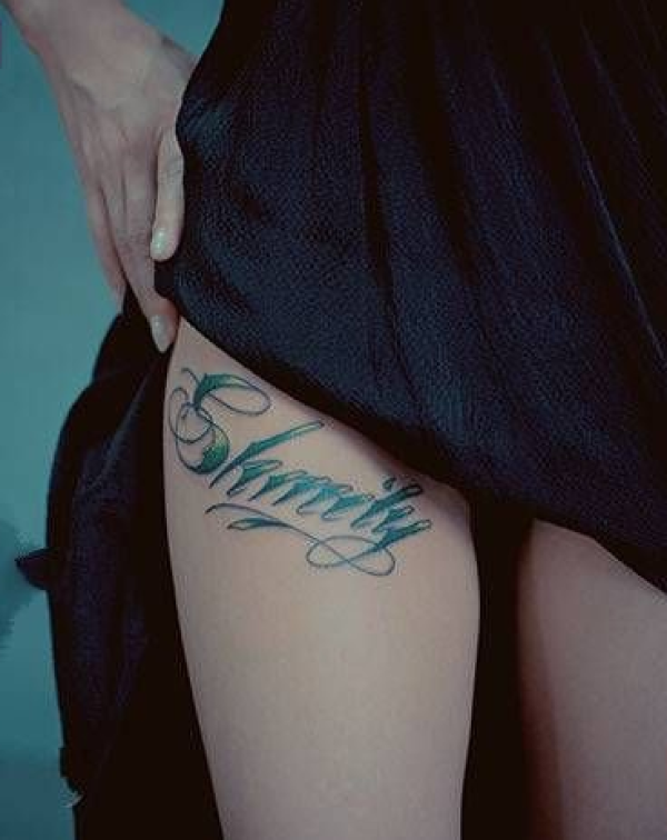艺术英文字体腿部纹身