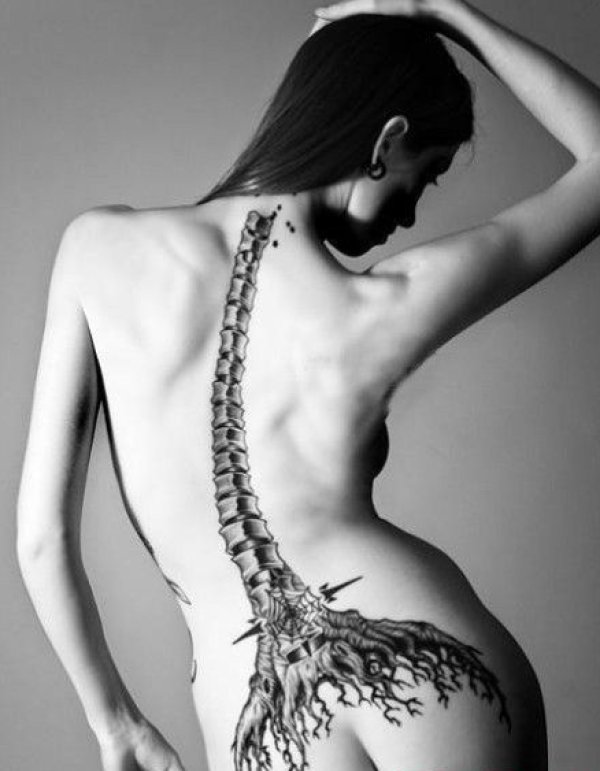 女生后腰纹身黑白灰风格抽象线条纹身图案
