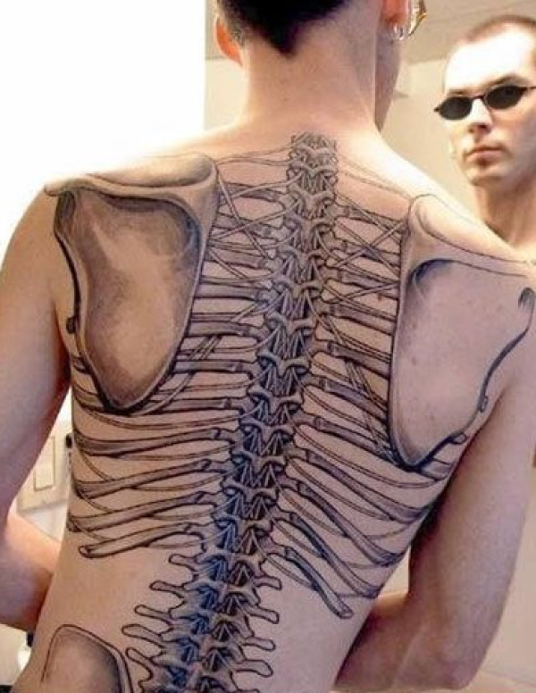 欧美男个性满背骨架纹身