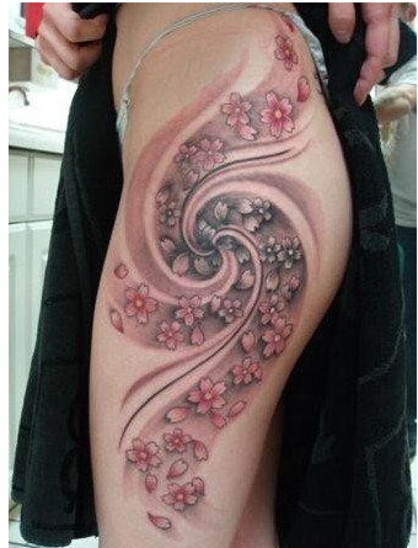 美女臀部性感精美的樱花纹身
