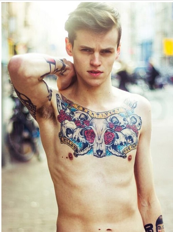 纹身图案胸部男 简洁大方的男生胸部纹身图案