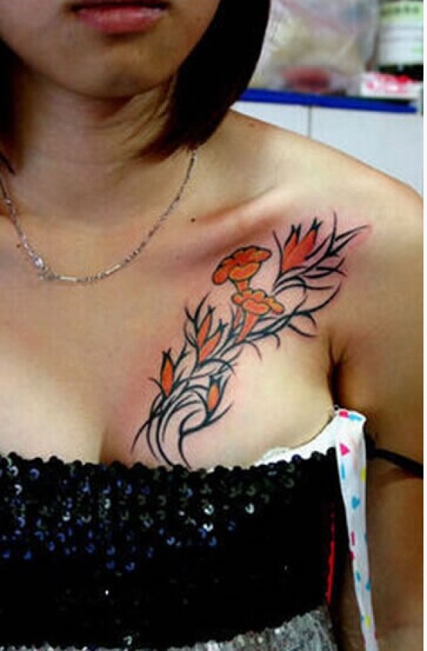 花胸纹身图案-9张好看的花胸纹身图片