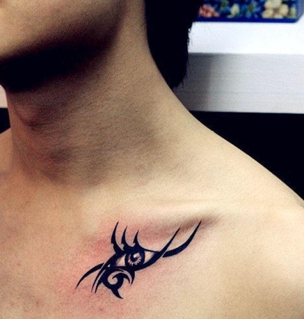 男士胸部创意图腾眼睛纹身