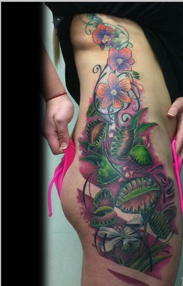 分享一款腰部时尚性感的蝶恋花纹身图案_腰部纹身图案大全_纹身图吧