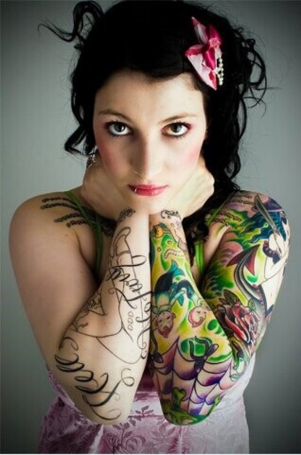 欧美美女生感魅力的花臂纹身
