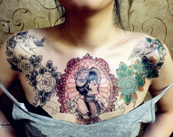 美女胸部个性欧美头像纹身