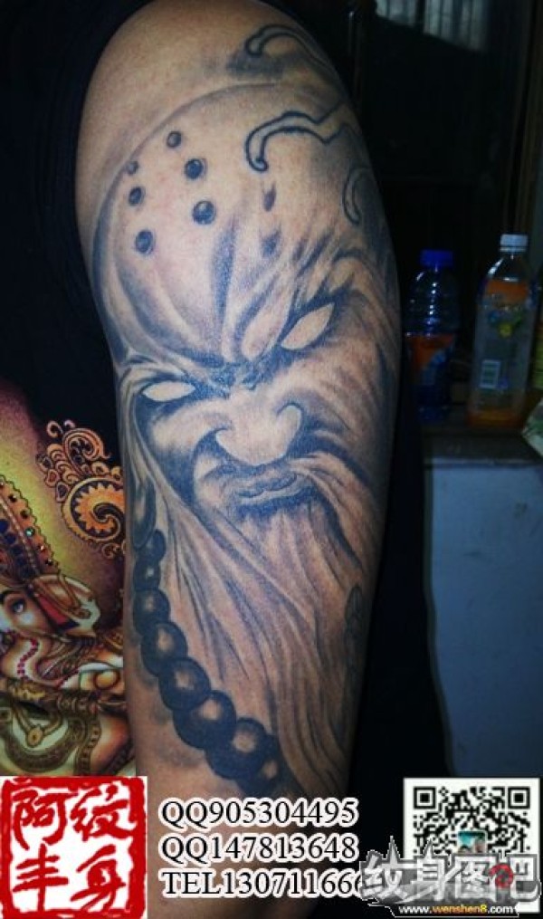 手臂黑灰象神_一组12张手臂上的黑灰象神纹身图案作品欣赏