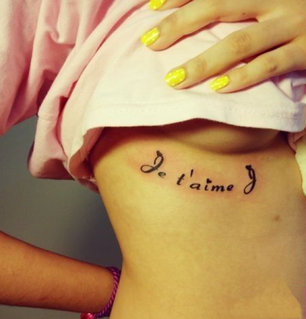 女生胸部性感法文纹身