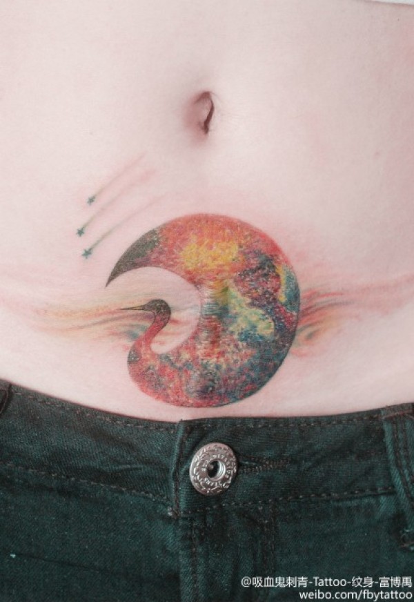 创意鹤与月的结合纹身