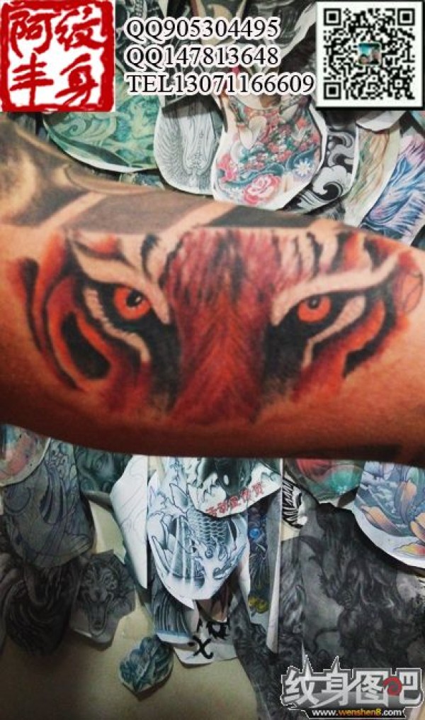 肩部内侧纹身 老虎纹身