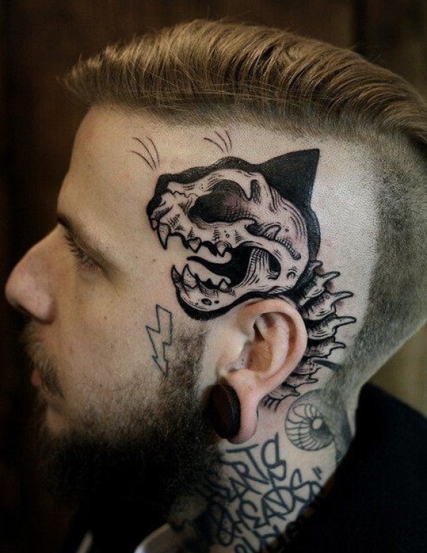霸气男头部时尚纹身图片_头部纹身图案大全_纹身图吧