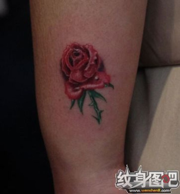 欧美玫瑰纹身 男生手臂上花朵纹身图片