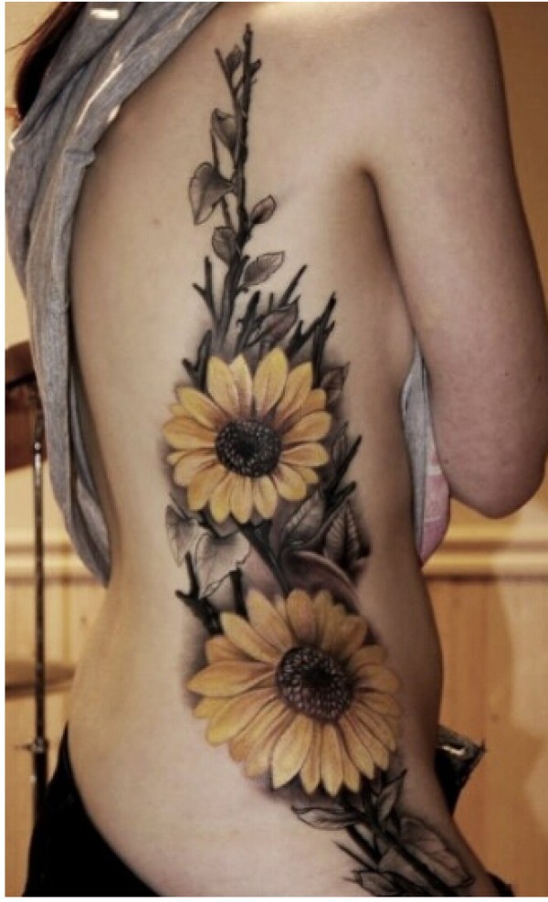 分享一款腰部时尚性感的蝶恋花纹身图案_腰部纹身图案大全_纹身图吧