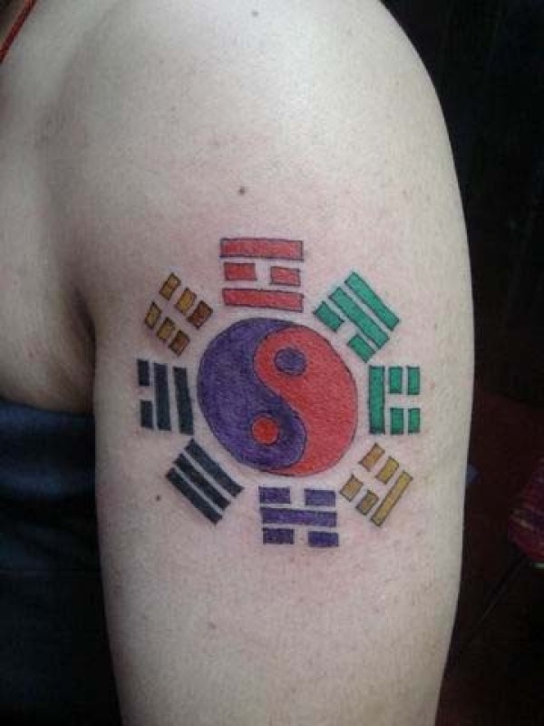 手臂上彩色的八卦纹身