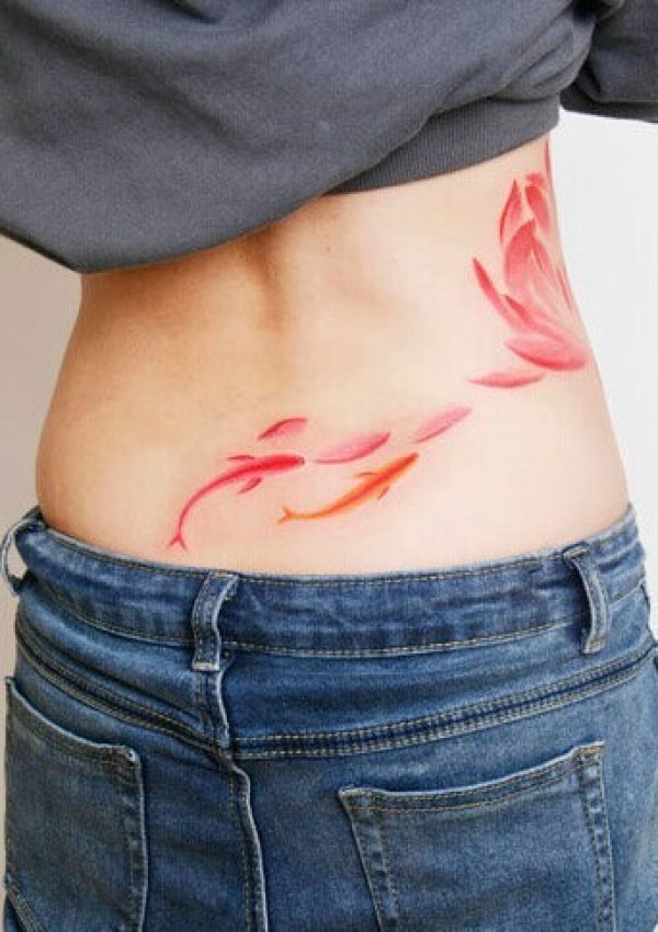 腰部创意鱼文身作品