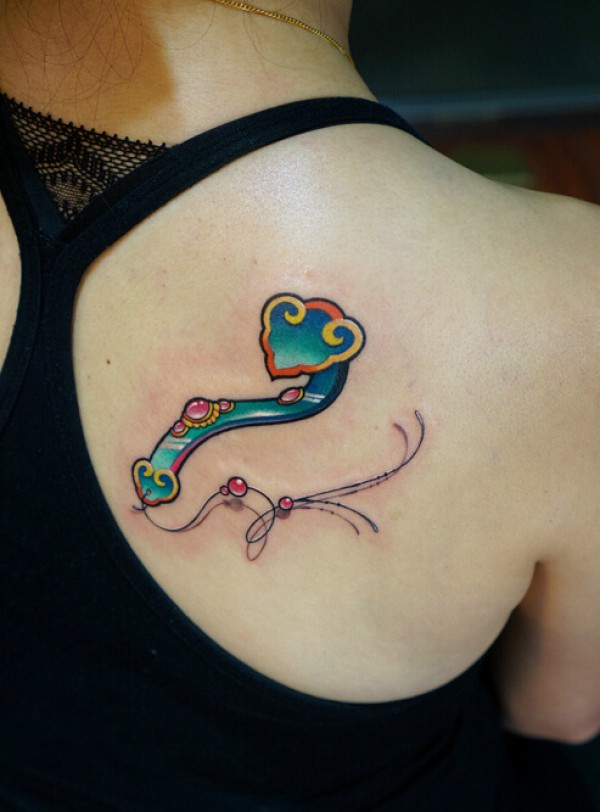 女生后背玉如意纹身图案