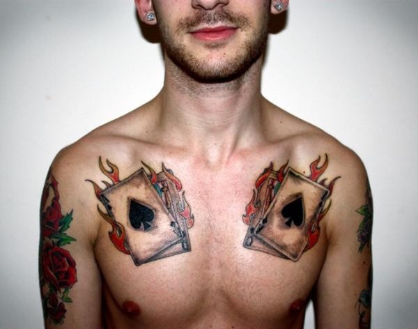 帅哥胸部个性扑克牌纹身图案
