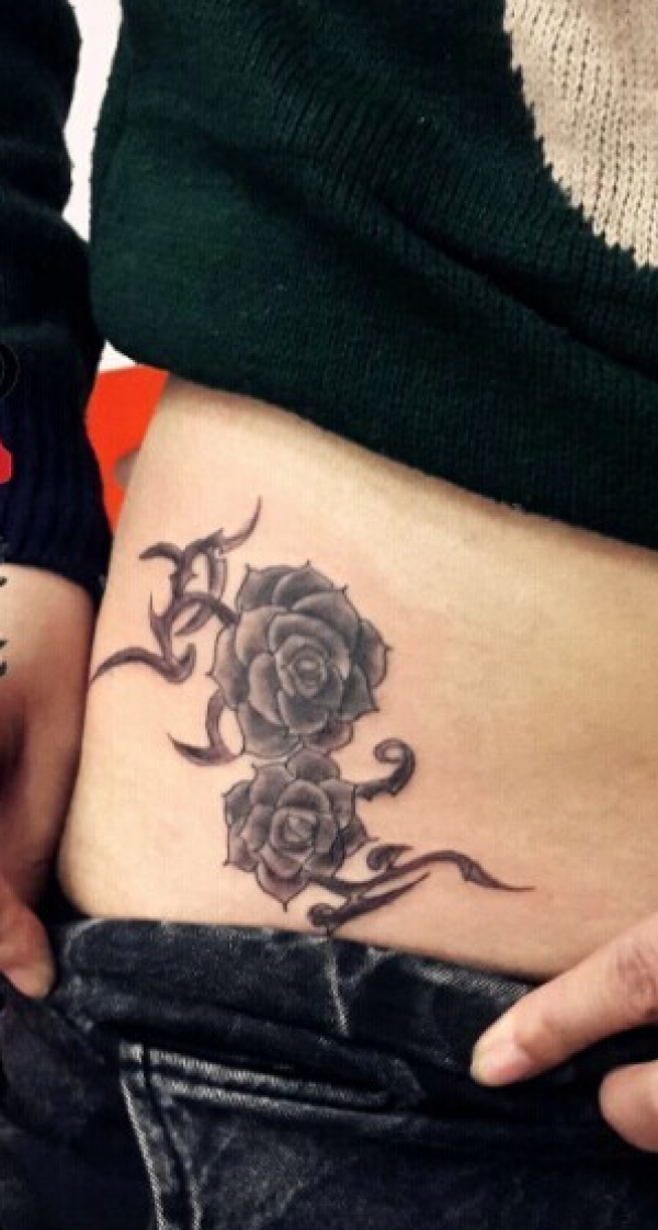 分享一款腰部时尚性感的蝶恋花纹身图案_腰部纹身图案大全_纹身图吧