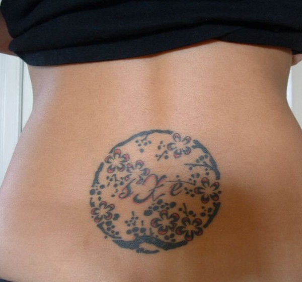 女生后腰梅花图腾纹身